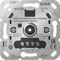 The GIRA DALI rotary dimmer base unit flush-mount with integrated power supply is a high-quality and versatile solution for dimming and controlling DALI lighting. This base unit provides flexible light control with adjustable color temperature and is suitable for direct flush mounting. Thanks to the integrated DALI power supply and support for DALI-2 control systems, this product is ideal for modern lighting installations in both residential and commercial environments.