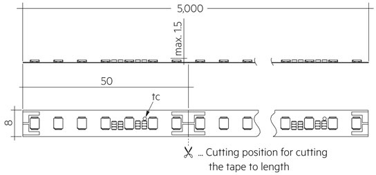 High design flexibility: 5 cm cut options and 140 LED light points per meter