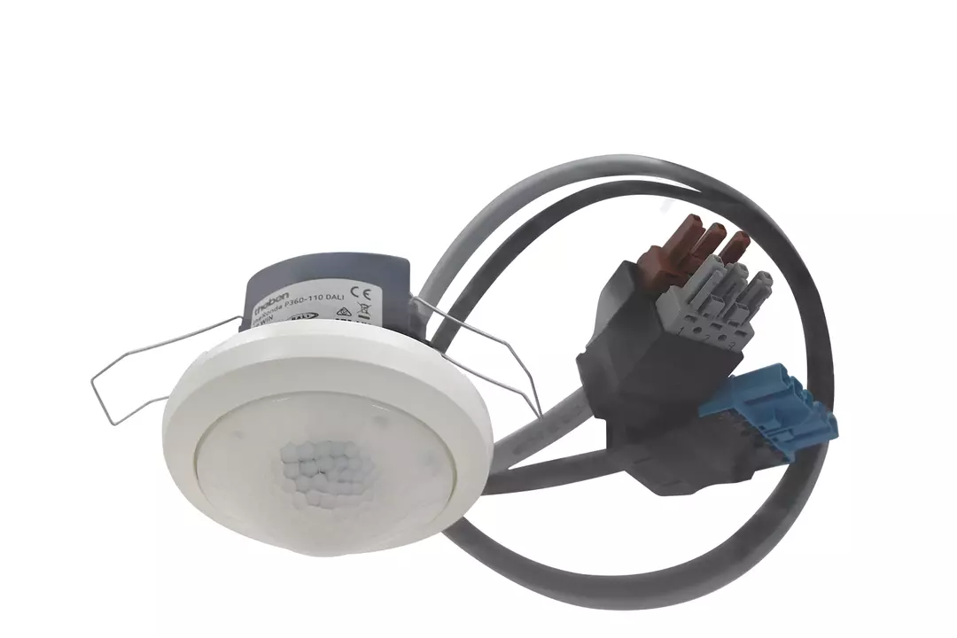 Il Theben theRonda P360-110 DALI SP WIN è un rilevatore di presenza da soffitto di alta qualità per installazione a incasso con funzione DALI-2 Broadcast. Con un’area di rilevamento circolare di 360° e un diametro fino a 24 m (max. 452 m²), il rilevatore è ideale per il controllo automatico dell’illuminazione e la regolazione della luce in grandi ambienti come uffici, scuole ed edifici pubblici. La fornitura comprende cavi preassemblati (0,90 m) e un connettore WAGO WINSTA per un’installazione rapida e sicura.