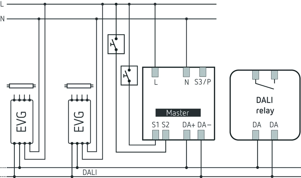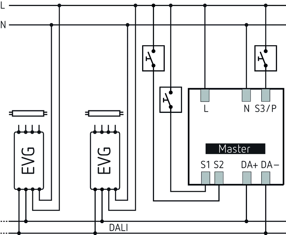 • Maximaal aantal DALI-lichtkanalen: 3 (individueel adresseerbaar, DALI-2)