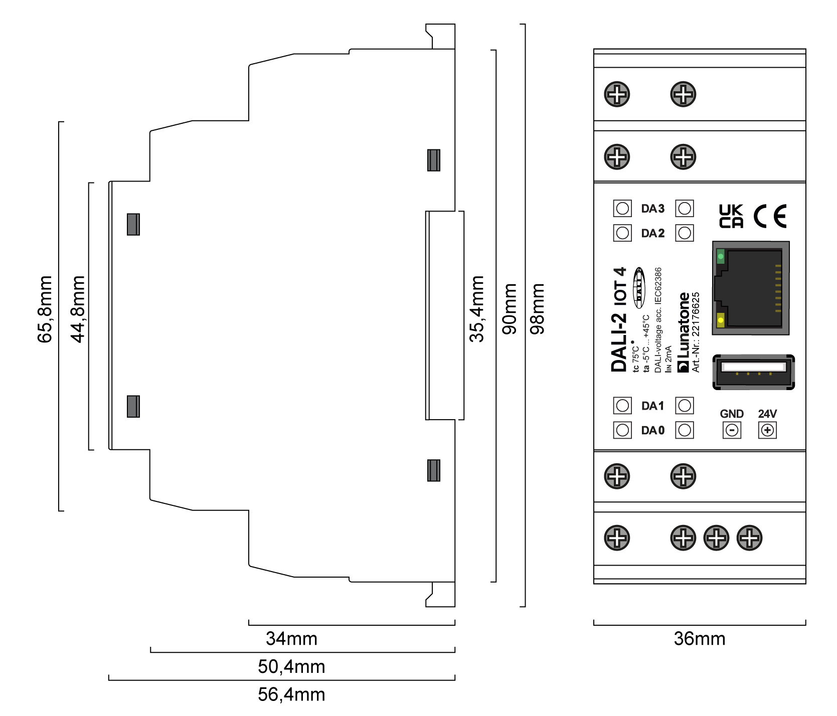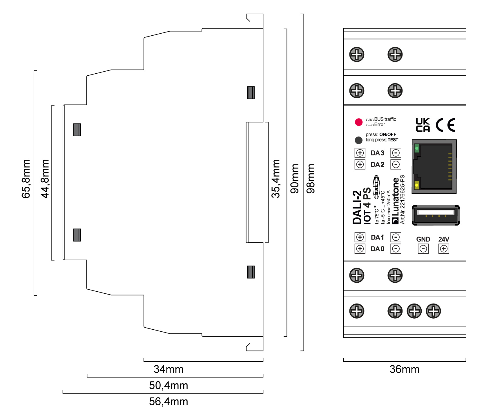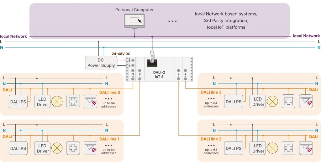 - Suporta até 256 dispositivos DALI em 4 linhas
