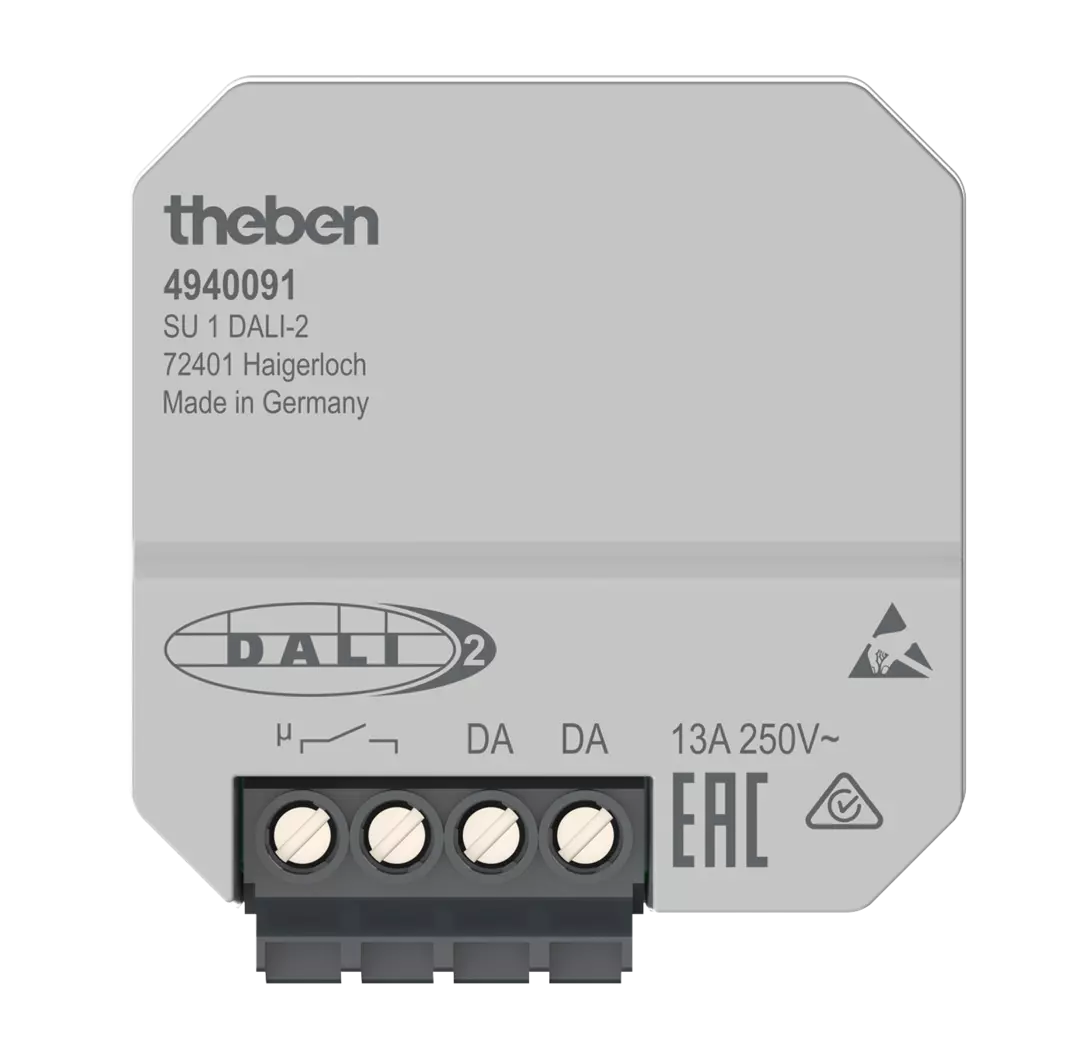 - O atuador SU 1 DALI-2 é certificado DALI-2 e foi projetado para uso com instalações compatíveis de barramento DALI.